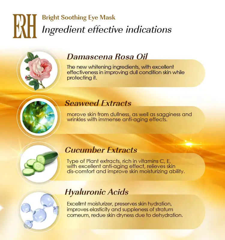 Treating Bags & Dark Circles - Eye mask contains an anti-bag ingredient which penetrates pores deeply to reduce sagging, swollen eyelids, enhancing the smoothness, firmness and even tone of the skin under the eye. The mask also helps repair the connective tissues around the eyes. With regular use, its anti-inflammatory qualities provide a significant decrease in violet coloration, blotchiness, and tiredness under the eyes.