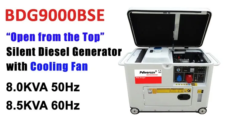 The silent diesel generator model BDG9000BSE 8KW 50Hz or 8.5KW 60Hz is usually used in places such as houses, shops without connection to a power grid, or as emergency power-supply if the grid fails. The model BDG9000BSE is featured for Easier Refueling, Easier Maintenance due to the Opened from the top design and Working temperature Cooling Down thanks to the cooling fan.