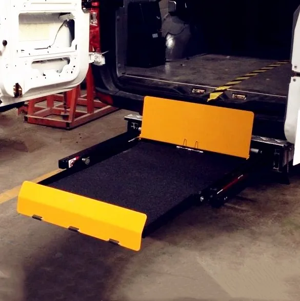 this lift helps the disabled and the elder to get on vehicle while seated in this wheelchair.