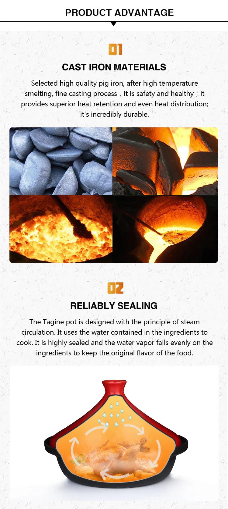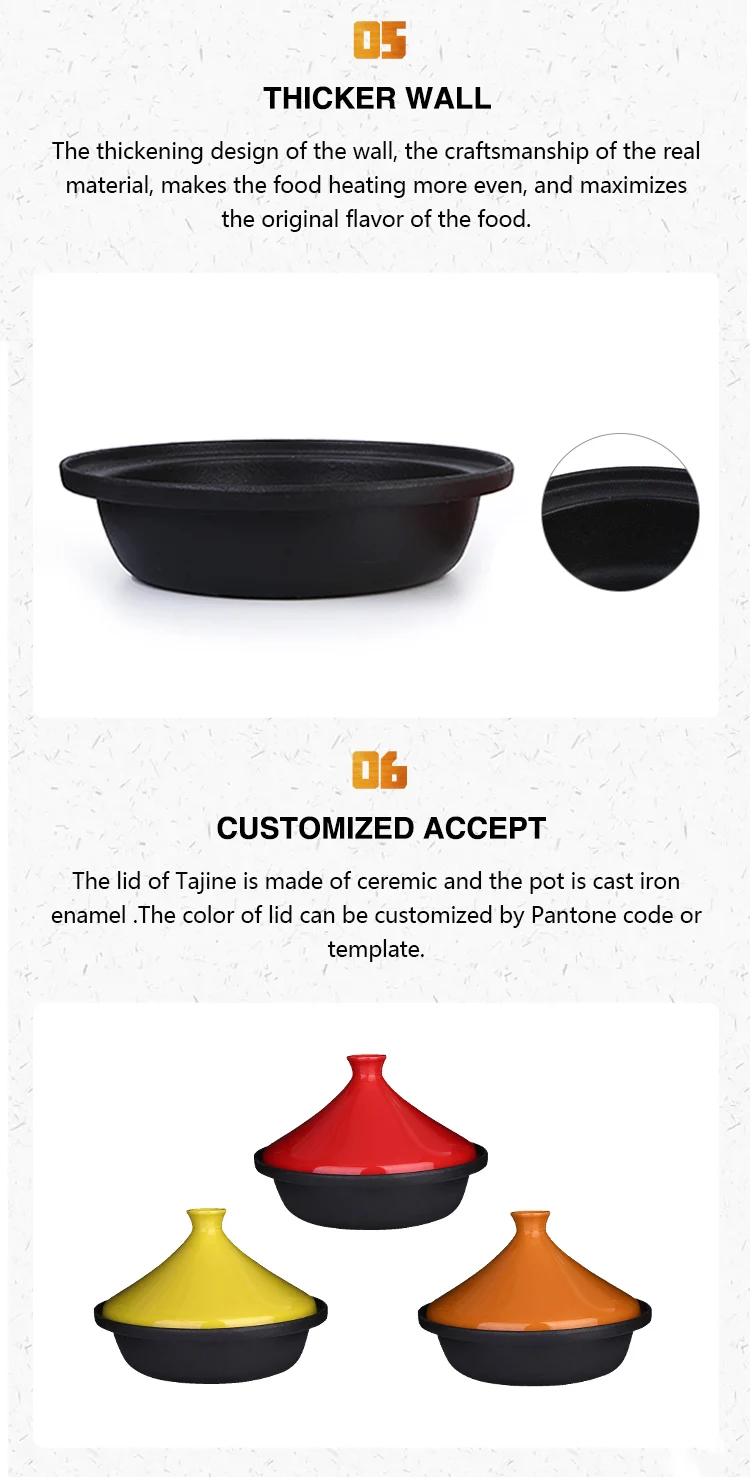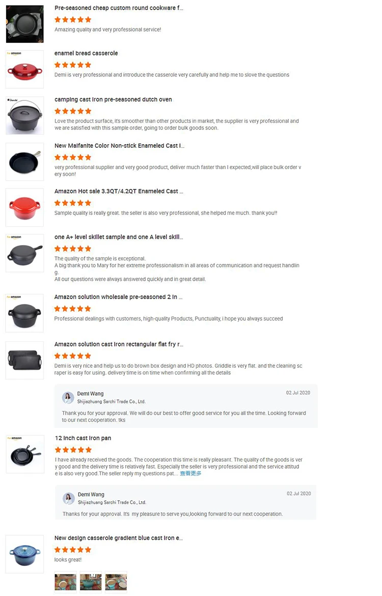 For enamel coating, it's physically non-stick, the non-stick level of our cast iron pans is level two, the non-stick effect is like the steamed rice pot. We can send you the video that show you how to pre-seasoned the cast iron pots and we also can offer you care instruction together with products and It is easier for your customer to know how to improve the non-stick performance.