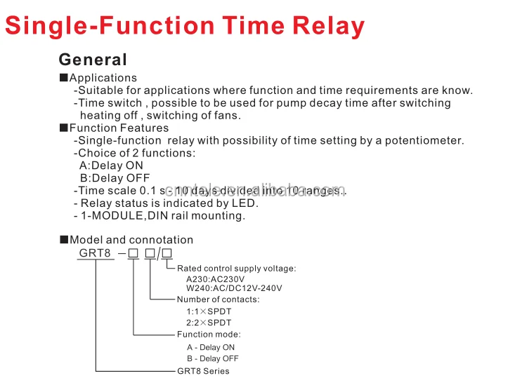 -Single-function and single-time relay with possibility of time setting by a potentiometer(within the frames of a particular time range).