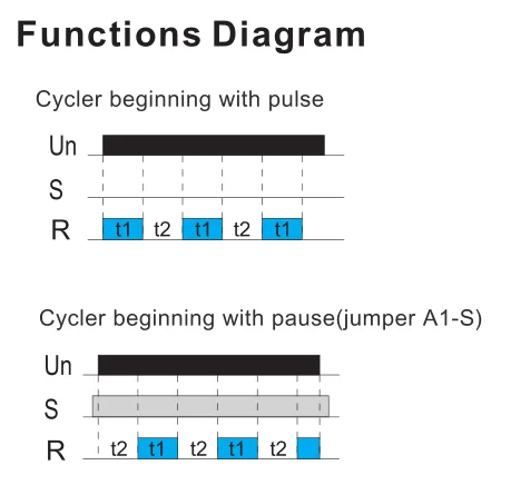 -Function choice is done by an external jumper of terminals S-A1.