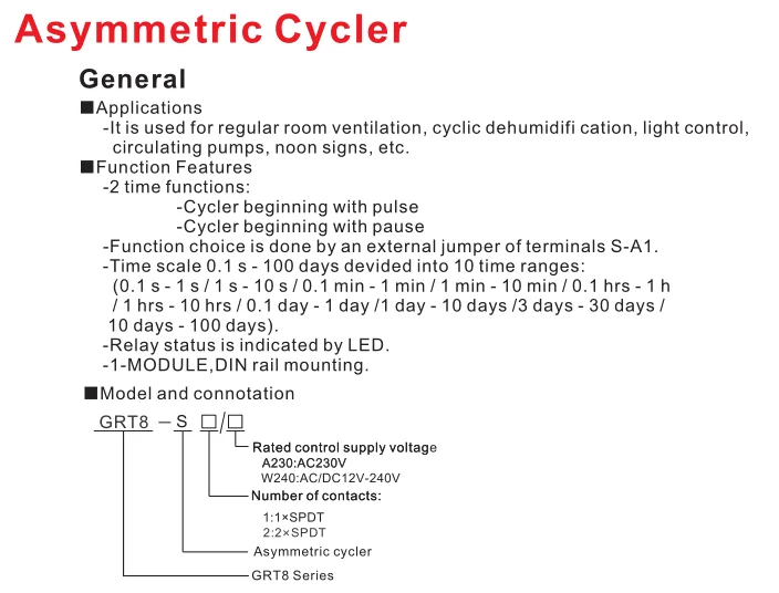 -It is used for regular room ventilation, cyclic dehumidifi cation, light control, circulating pumps, noon signs, etc.