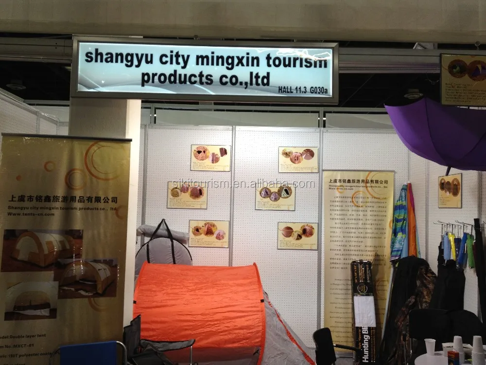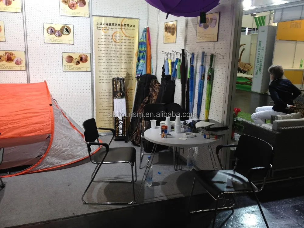 We are major in producing all kinds of tent ( blind tent,ice fishing tent and camping tent) and umbrellas (e.g. straight, 2-fold, 3-fold, 4-fold, 5-fold series), gift umbrella, advertising umbrella, and other traveling leisure goods. After 10 years' development, the company has integrated research, design, production and sales to become a specialization, standardizing and mass production manufacturer. Our products are exported to more than 100 countries and territories, including Australia, USA, Brazil, Dubai, UK, France, Spain and so on.