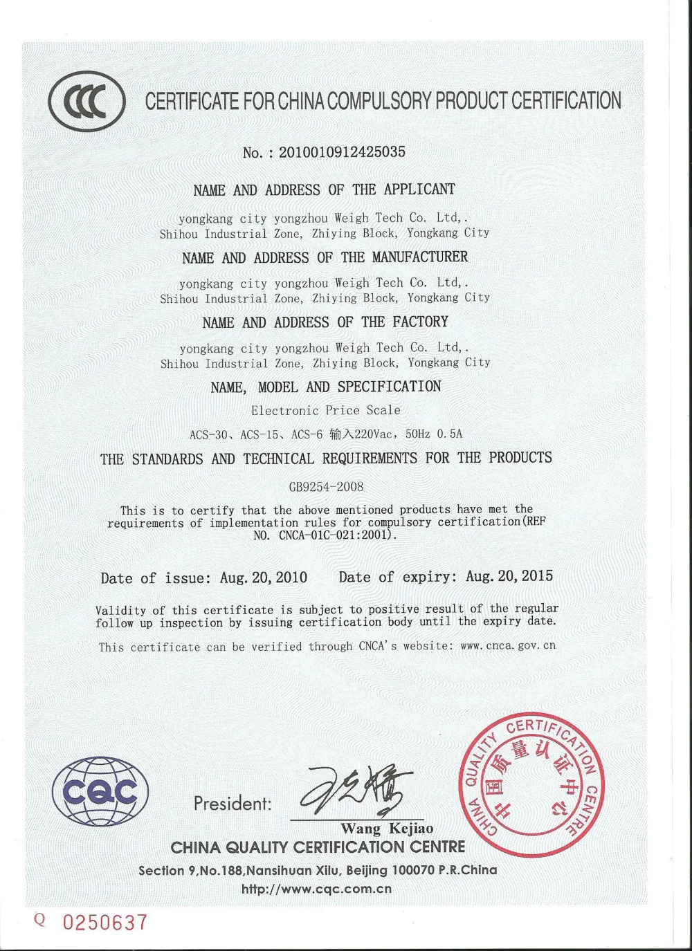 3. Certificate of scale: CE EMC, CCC