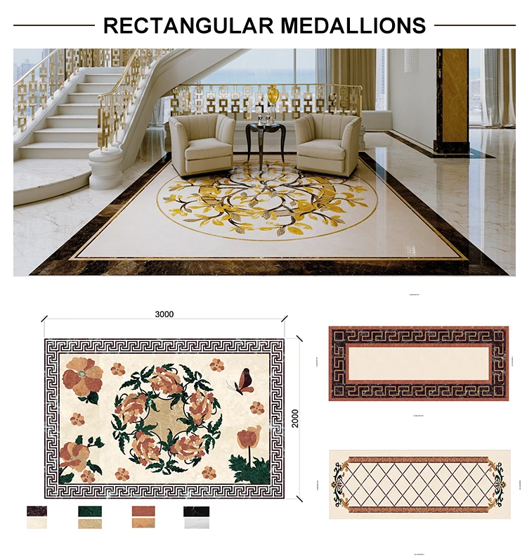 Name | Custom interior hall flooring design exquisite carved waterjet medallion marble |