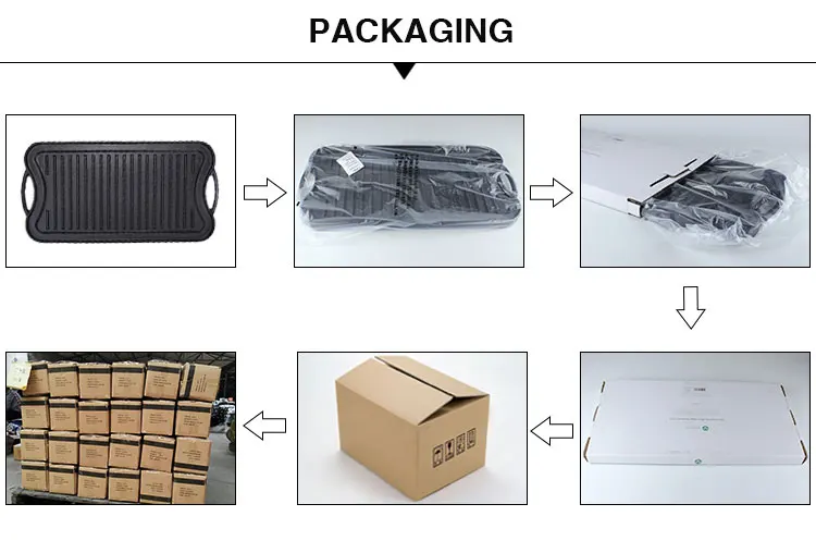 Since cast iron cookware is heavy, we generally choose sea and railway transportation.The packaging process is rigorous to ensure that the goods will not be damaged during transportation.