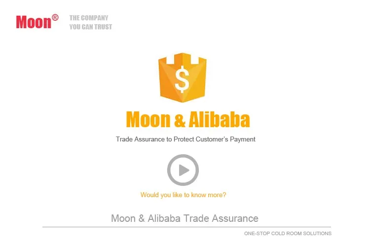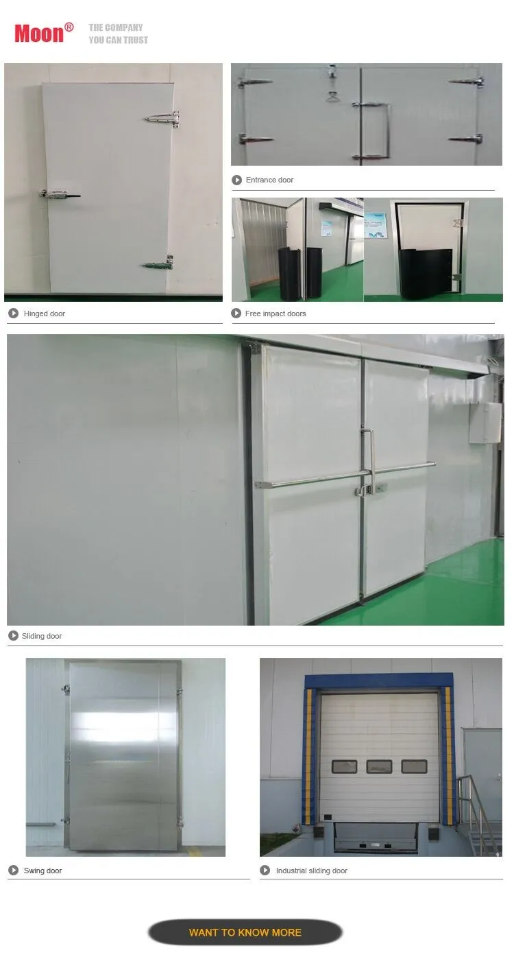 Moon cold storage room is mainly used for the constant-temperature storage of food, dairy products, meat, aquatic products,poultry, fruit and vegetable, cold drink, flower, green plant, tea,medicine, chemical raw material, electronic instrument, etc.Meanwhile Moon team provide the oversea installation guidance and training.