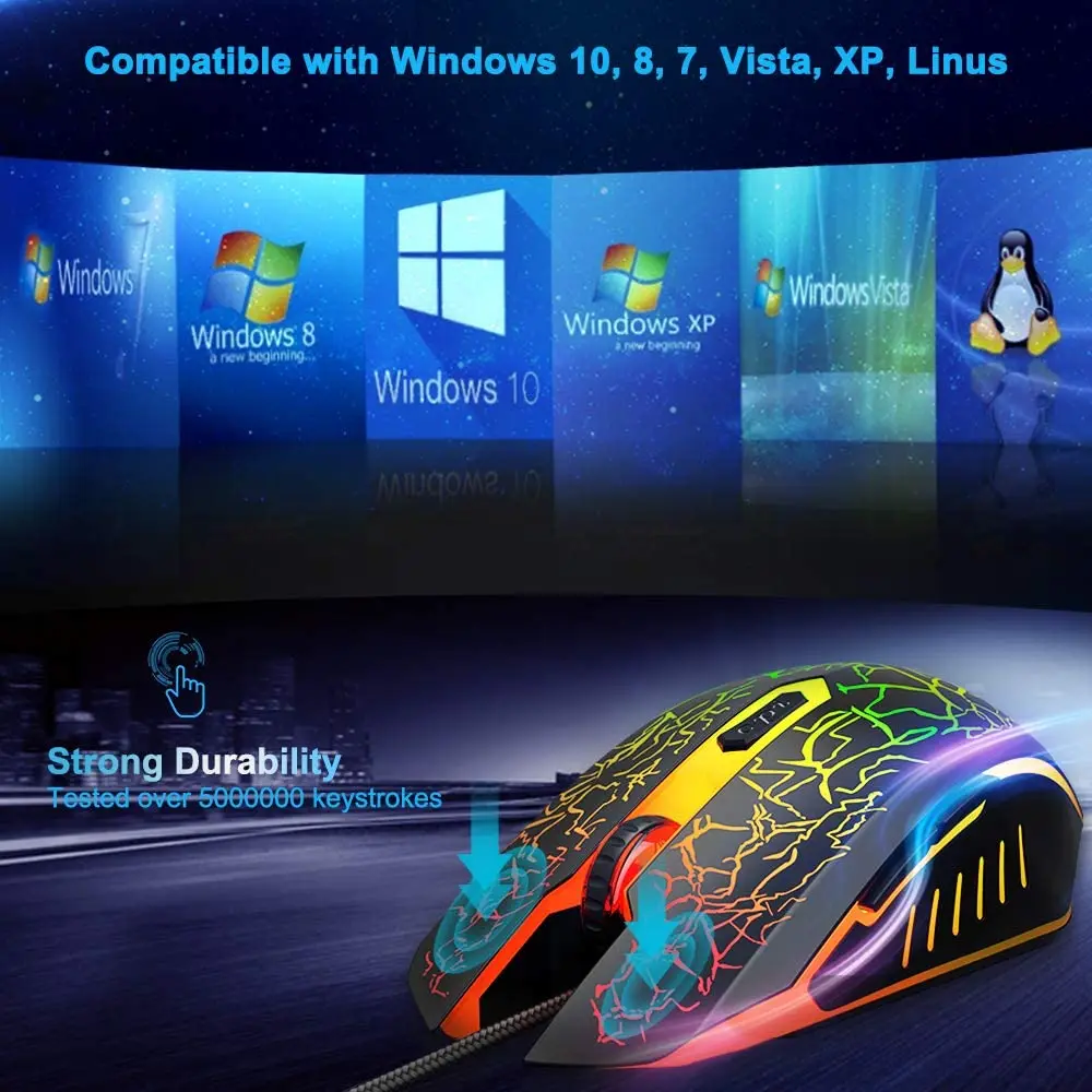Wired 7 Colors Breathing LED Light Up Custom 6D Gaming Mouse