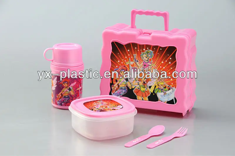 *Hard plastic lunchbox with plastic carry handle on top. Flip open/snap close latch.easy to open but secure clasp that even the littlest hands will be able to master!