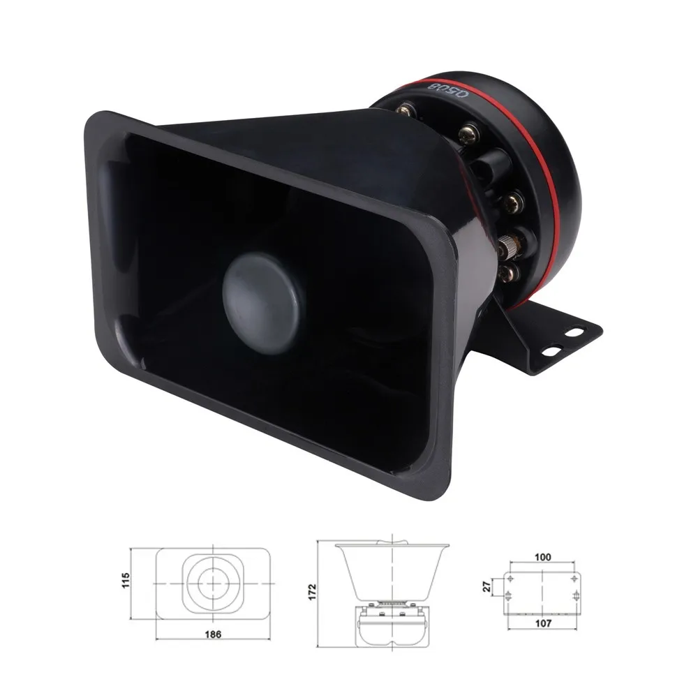 YH101 auto 8 ohm 11 ohm police car horn speaker 100W, features industry leading Neo-driver, which is known to deliver a robust low frequency sound. Made of corrosion resistant aluminum, this high-performing true 200-watt speaker is designed to withstand the toughest conditions. The Dynamite's lightweight housing mounts easily into the grille, flush between the bumper and hose tray of large apparatus and to most vehicle's bumpers. Features Neo-driver for increased dependability Quick, easy and cost efficient installations 200-Watt high-output power Corrosion-resistant aluminum housing with Black Finish Sound output meets SAE J1849 and Class A Slim and lightweight housing - 172*206*132mm / 6.8 lbs 11 Ohms Use this speaker with any 200 watt siren. This is a great speaker at an affordable price Designed for 200 Watt sirens and emergency vehicles 5 Year Hassle-Free Warranty