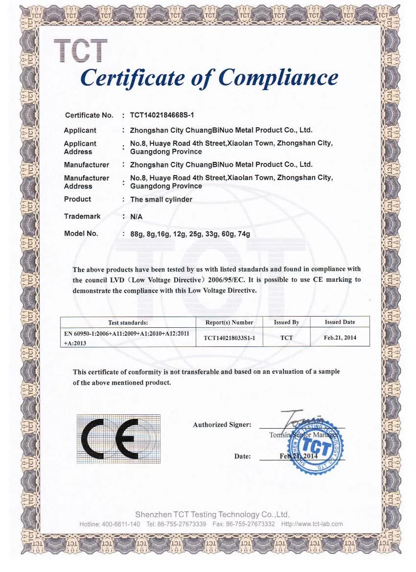 1. Grade: Food grade co2 cartridge