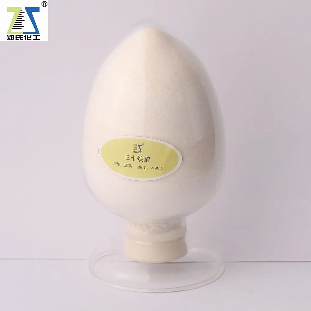 The pure Triacontanol/ Myricyl alcohol is white flaky crystal, Triacontanol/ Myricyl alcohol is insoluble in water, difficult to dissolve in cold ethanol, benzene, soluble in chloroform, methylene chloride. It's stable to heat, Light, air, heat and alkali; Melting point is 85.5~86.5℃.