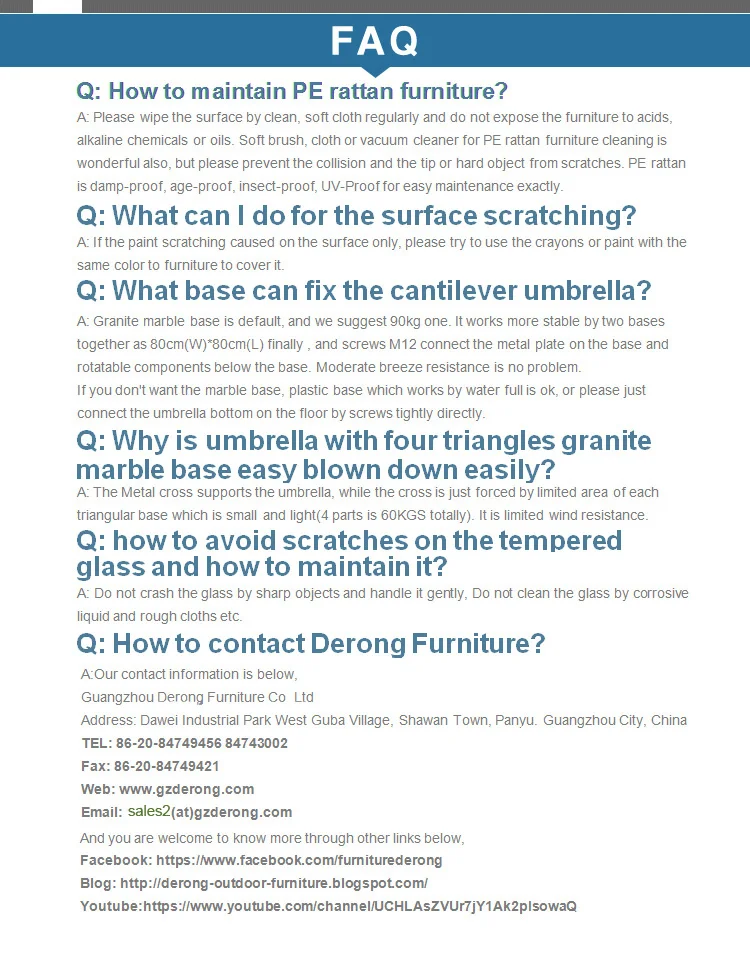 Derong has been the leader in outdoor furniture for over 16 years in Guangdong Province., Which includes bar sets , coffee sets , dining sets , sofa sets , sunbed sets , swing chair sets, umbrella and so on. Impeccable quality, sophisticated styling and best-in-class warranties prove the new generation of Derong offers more possibilities than ever.