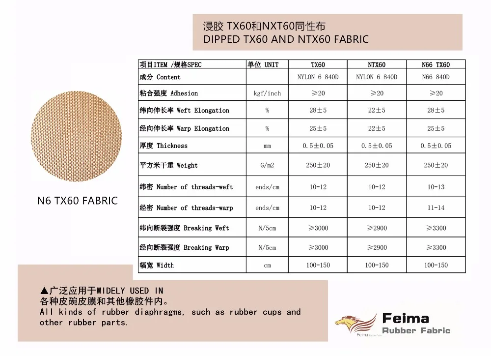 | Product Name | TX 60 NYLON 6 DIPPED RUBBER FABRIC 840D FOR RUBBER DAIPHRAGM AND RUBBER MOULDS |