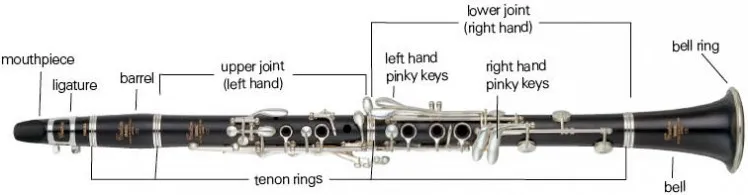 B flat is by far most common clarinet, a clarinet is construced of five components. monthpiece,barrel,upper joint,lower joint, bell