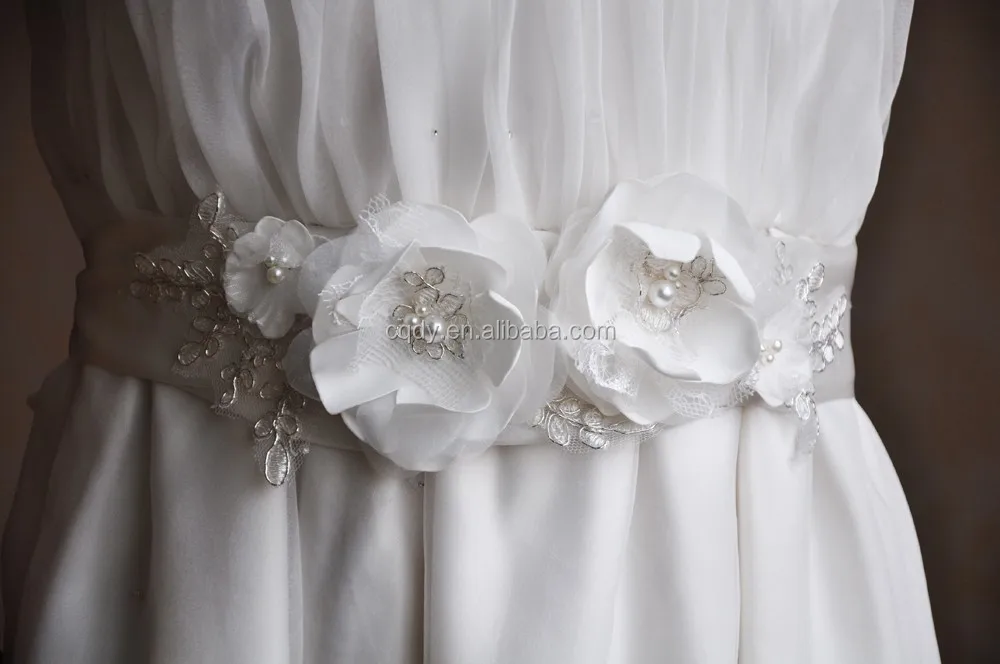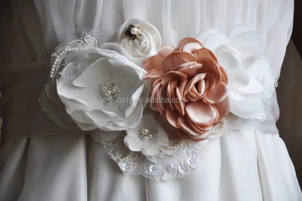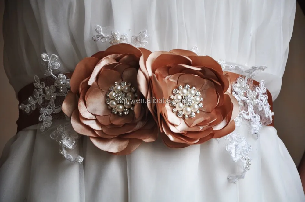 New Promotion Crystals Sash for Bride Artificial flowers Wedding Belt with lace for Weddings Real Images