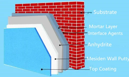 1. The substrate should be smooth and strong; no dust, grease, release agents, batik materials. 2. If the base place is uneven, pls level it with putty. The new plastered cement mortar surface should be maintained for more than 14 days before application. 3. The construction should be done between 5℃-30℃. 4. Pls stop working in raining day for exterior wall putty. 5. pls do not mix Mesiden Putty Powder with other Putty, which may cause color difference or chemical reaction.