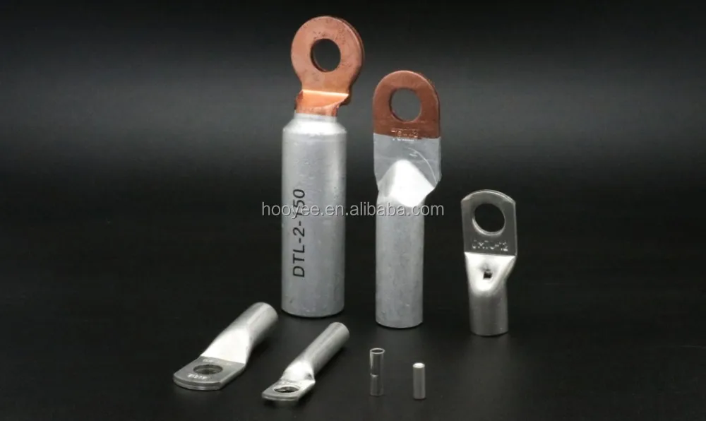 DTL series Al-Cu connection terminal is suitable for transition joint of distribution device aluminum core cable and electric equipment.DL aluminum is used for aluminum terminal linking of aluminum core cable and electric equipment.DT copper terminal is used for copper terminal electric equipment.DT copper terminal is used copper terminal linking of copper core cable and electric equipment,The products adopt friction welding workmanship,It has advantage of good electric conductance,electrochemlcal corrosion resistance,long service life.