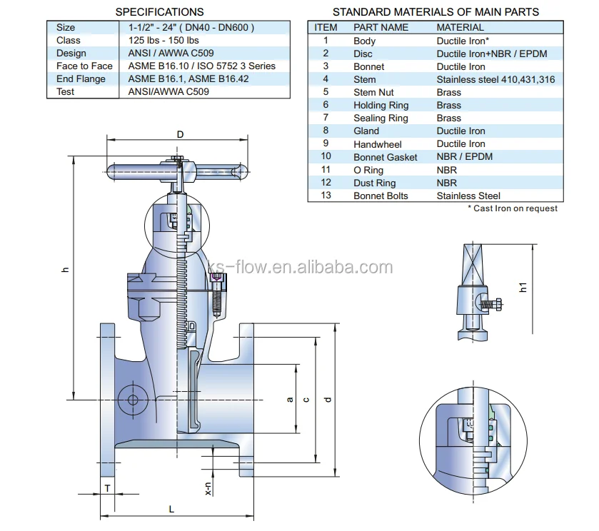 Series AWWA C509 NRS Resilient Seat cast iron 4 inch water gate valve handwheel