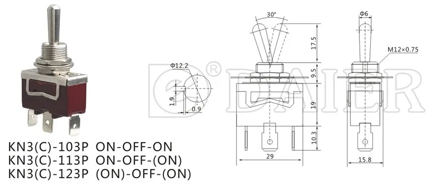 Product Name | ON OFF ON Toggle Switch KN3(C)-103P 15A 250V~ | ||||