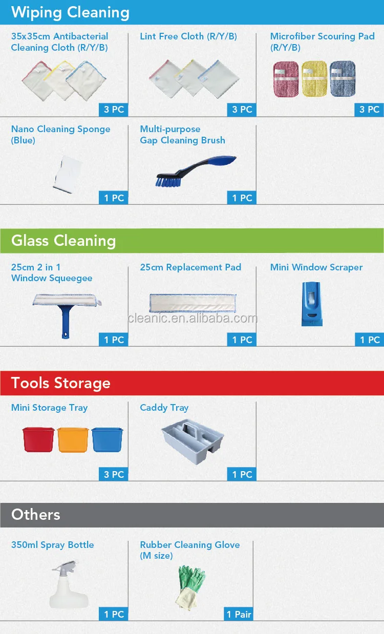- A combo kit that include all needed tools for daily house cleaning.
