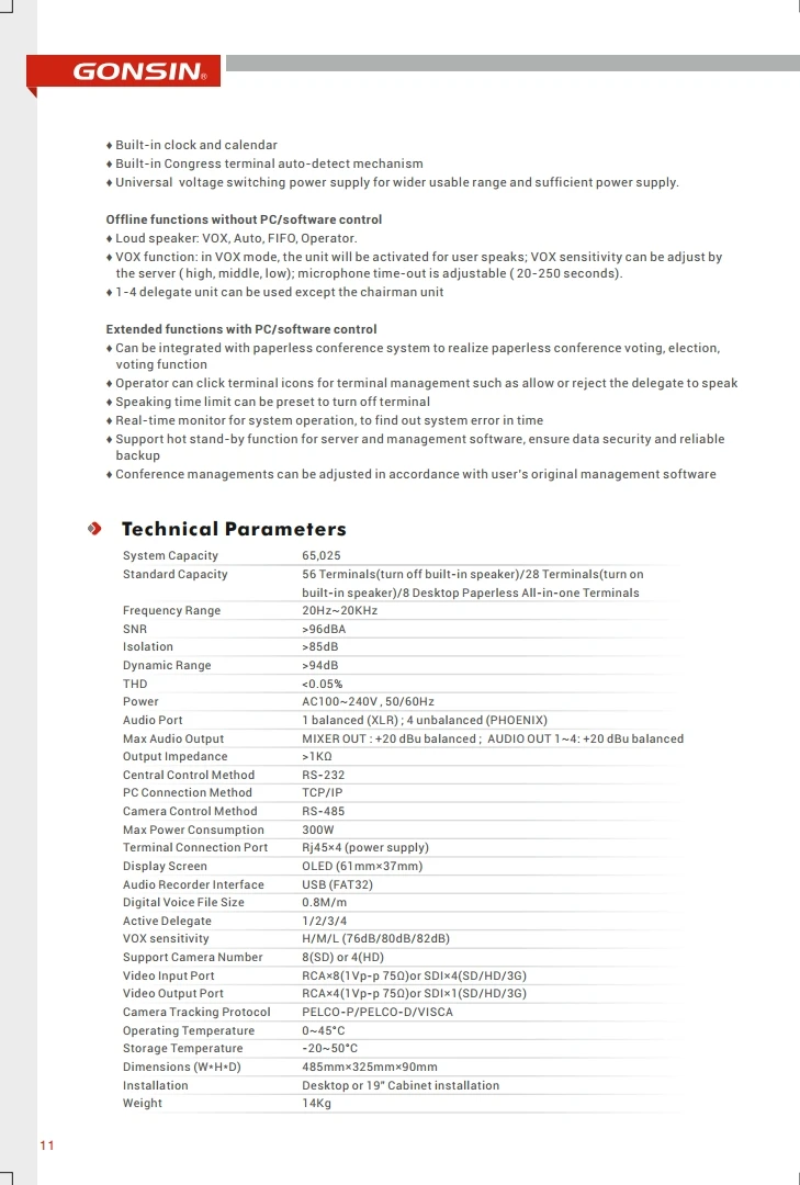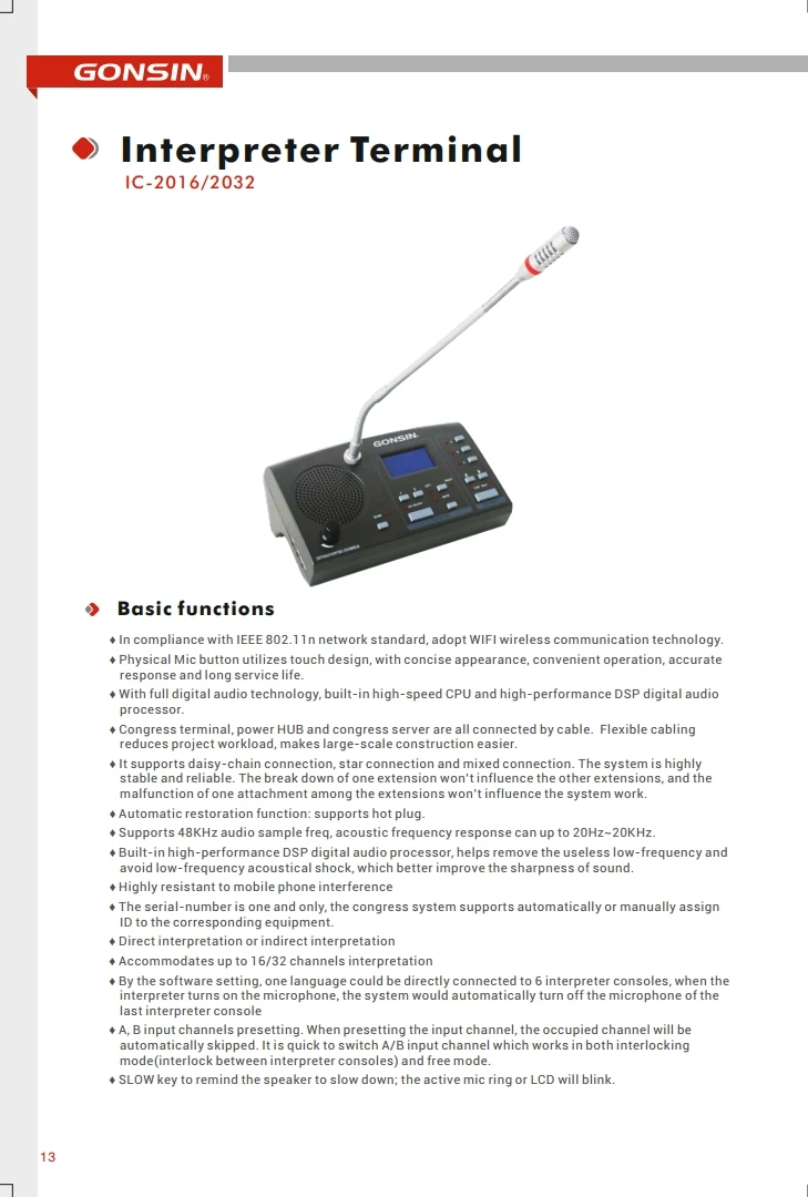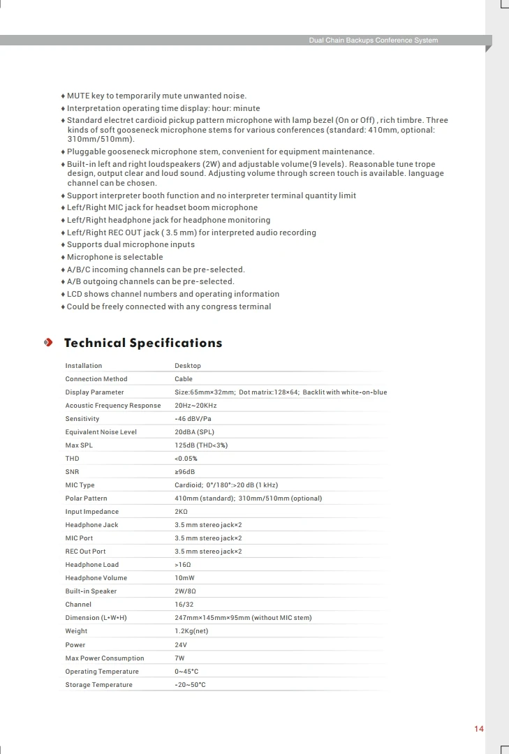 Simultaneous Interpretation Channel Number | 32 channels |
