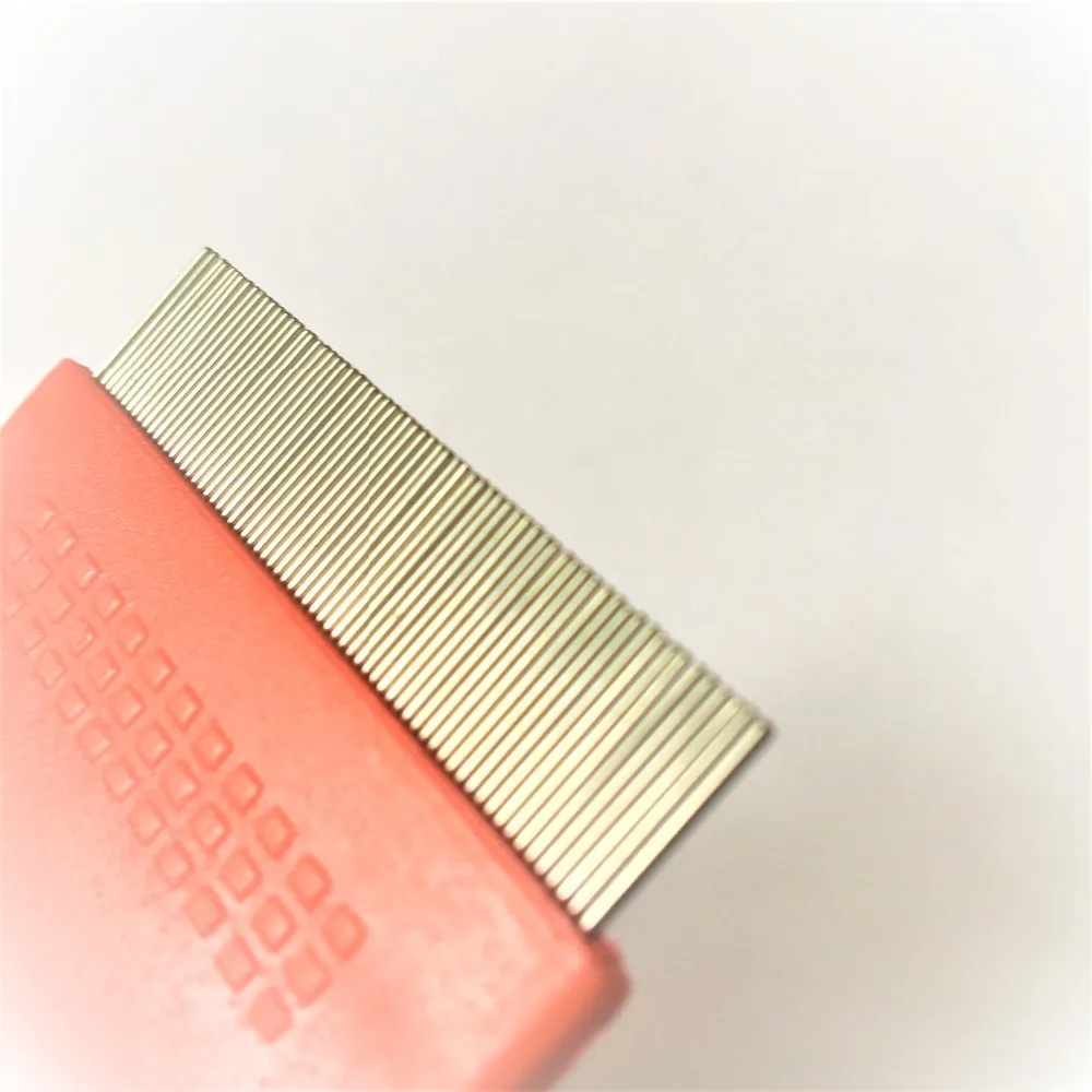 Comb teeth about 5.5 cm in length, ultra-dense teeth spacing stainless steel needle, fine needle, the end rounded, can be deep inside the hair, do not hurt the hair and skin, combing the villi at the same time can effectively remove the pet body tiny fleas.