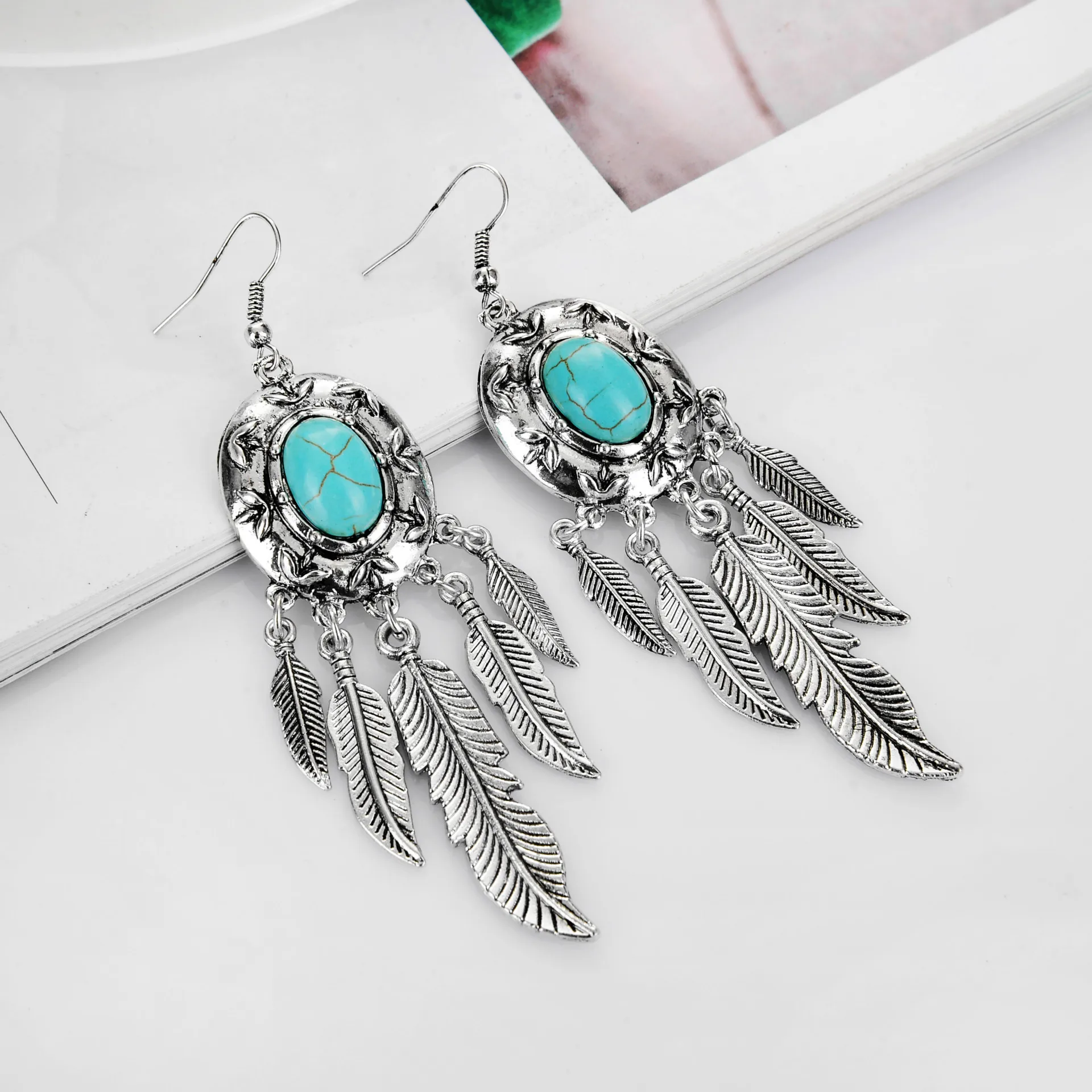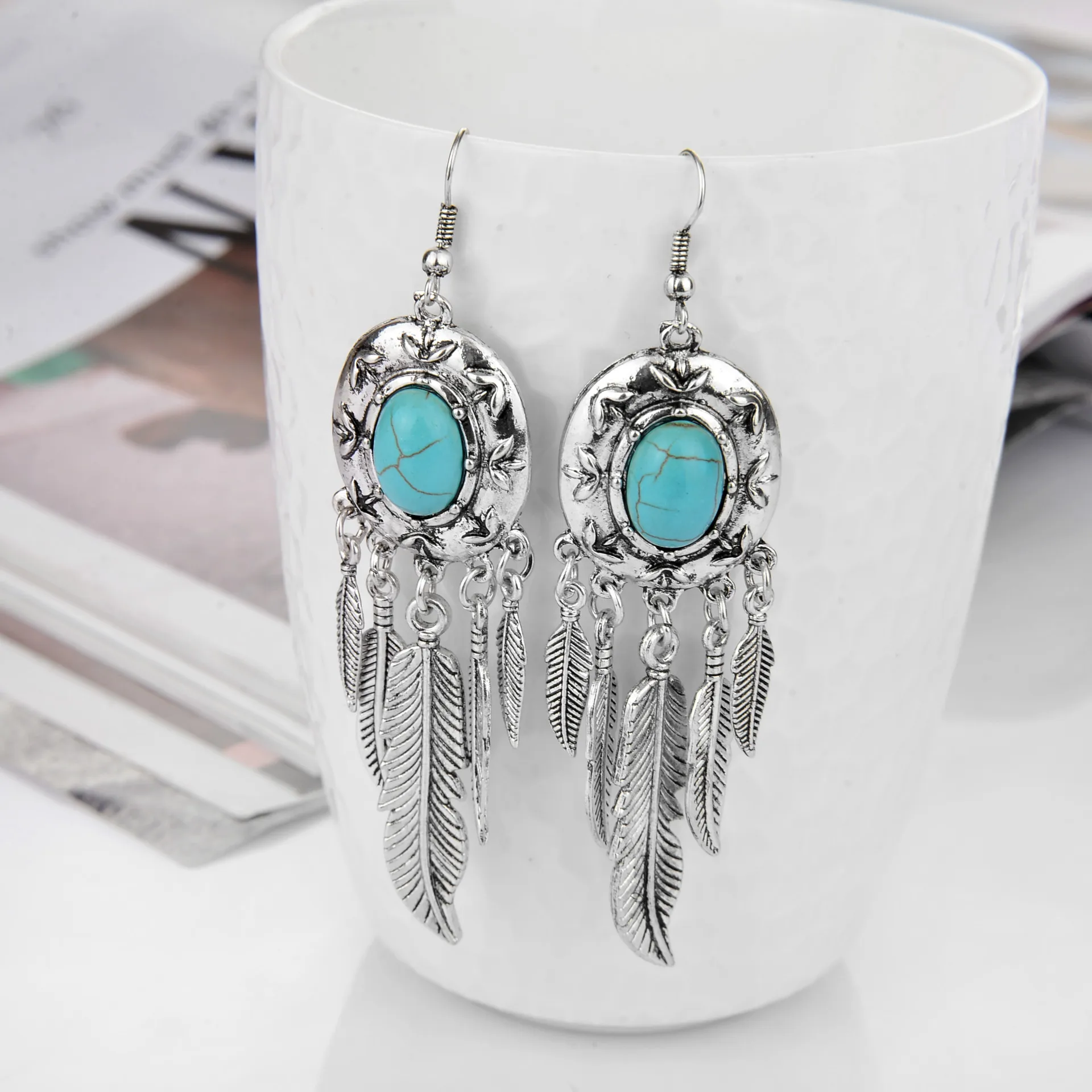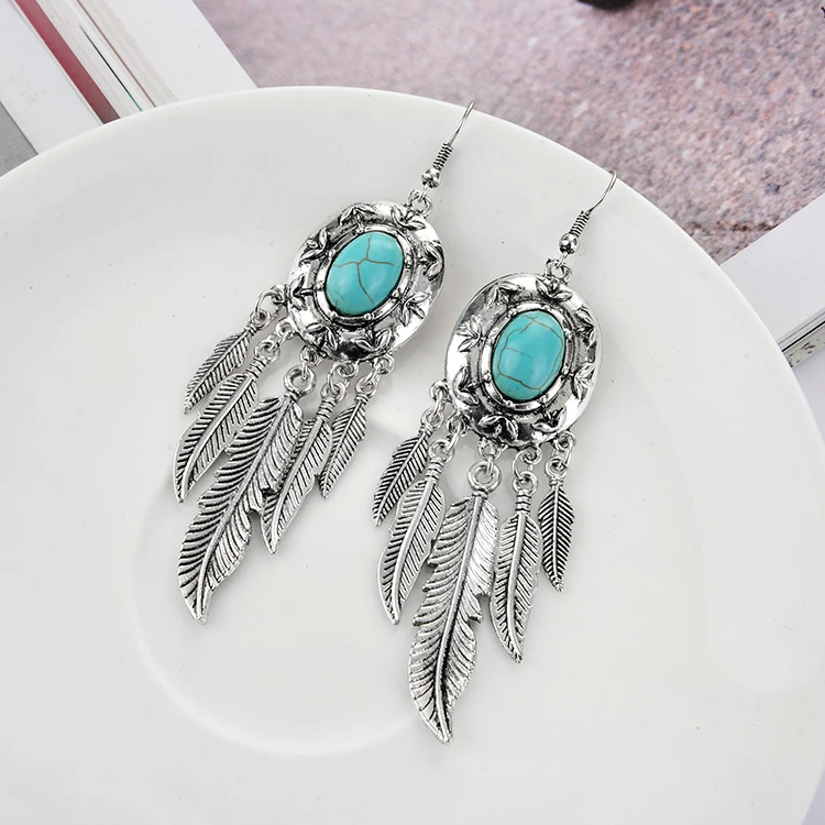 Latest Design Antique Silver Turquoise Earrings Bohemian Jewelry Wholesale
