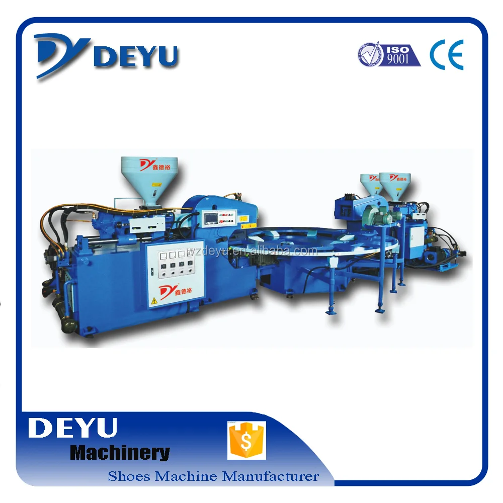 1.This shoe injection moulding machine is applied to produce the one color, two color or three color leisure shoe soles, male and female slippers and sandals , air blowing shoes and sport shoes which are made of PVC,TPR,TPU,PP materials.
