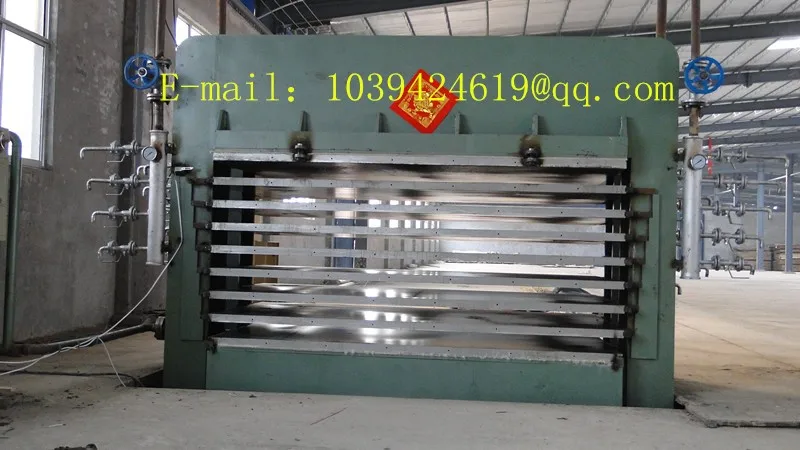 Plywood hot press is one of the main equipment of the plywood production process and it is used for hot press the veneer/core that after gluing , the function of different varieties of plywood for the hot press machine have different requirements: ordinary plywood, aviation plywood, plastic melamine board , wood laminated plastic board, marine plywood manufacturing the required pressure is increased gradually. Plywood hot press according to the operating mode can device into sub cycle and continuous two kind, the domestic commonly used is the cycle of multi-layer hot press. It consists of three parts: hot pressing machine body, control drive part (hydraulic system and electric control system), heating system three part.