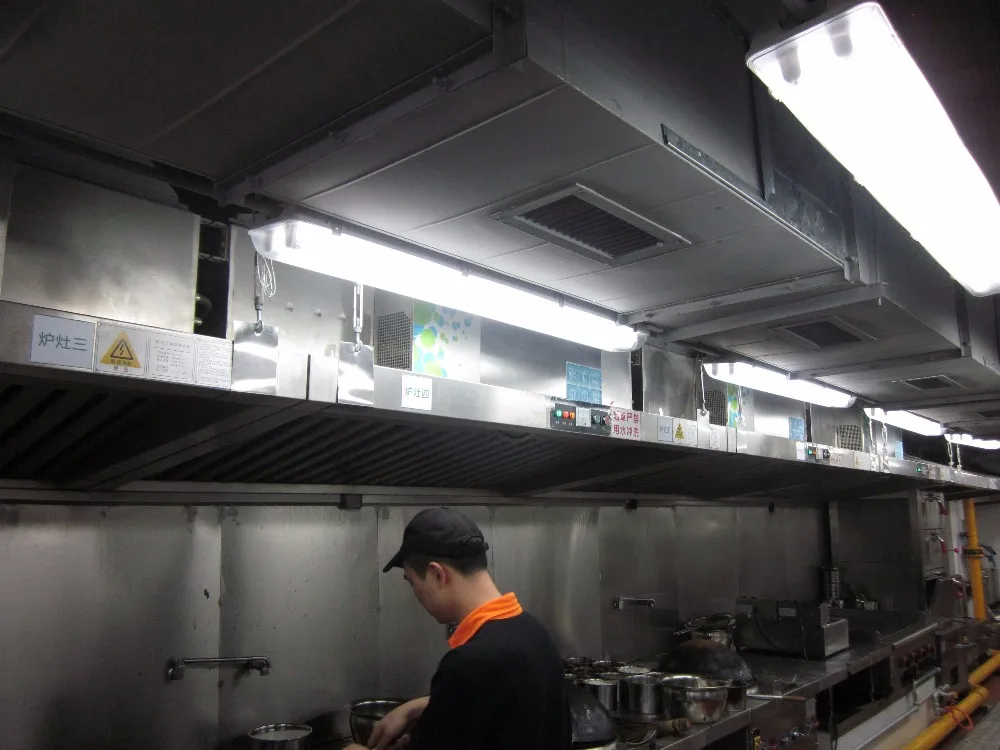Klean Kitchen Exhaust Range Hood type air cleaner dust collector is used to purify the commercial kitchen cooking & grilling fume grease with advanced electrostatic precipitation technology. After using this Kitchen Exhaust Range Hood type air cleaner dust collector, the fume can be effectively removed with over 98% purification efficiency. No smoke will be seen at the outlet. Most of odor can also be removed. The Kitchen Exhaust Range Hood type air cleaner dust collector is widely used in the kitchens of hotels, restaurants, enterprises and universities, etc.