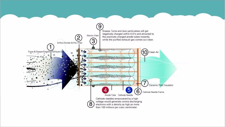 Maximized corona discharging uniformity & electric field intensity, Maximized corona discharging uniformity & electric field intensity, hence maximized purification efficiency. Superior mechanical strength compared with other conventional electric fields. which are apt to get deformed easily during the maintenance and cleaning.