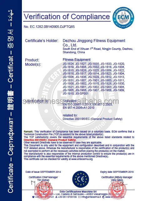 Dezhou Jinggong Fitness Equipment Co., Ltd. is one of the well-known manufactuer of gym equipment in China, located in Dezhou City, Shandong Province, China. We have R&D center that recruit top experienced researcher and designer in gym equipment field. And we emploied the most experienced workers and elite managers. We comply with the ISO 9001 and our all gym equipment s are authenticated by CE ROHS.