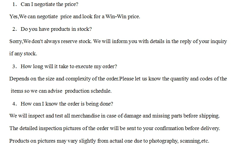 ♦ Payment terms: By T/T, 30% deposit before mass production, balance should be paid before delivery.