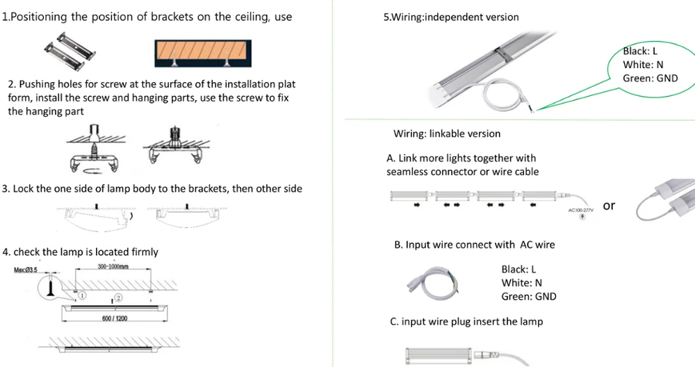 4..Can be arranged in rows due to integrated connector system.Male-female lamp holder to connect two pieces lights.