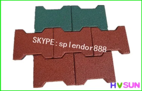 Environmentally friendly and fully reversible SP-BN recycled rubber floor tiles let you create a safe, comfortable, protective floor covering within minutes. The interlocking bone shape tiles work like puzzle pieces that easily fit into place, creating a fit so precise; its seams are virtually invisible. You can transform hard, old, worn out flooring in your basement, horse stable,outdoor playground flooring. Our Strong Rubber Tiles offer excellent recycled rubber tiles solutions for residential and commercial users, demanding top quality interlocking rubber floor tiles. Corner, border and center cut tiles options help make small kits for easy handing, but more importantly the multiple cut options make wall to wall installation a breeze. An added bonus is that the locks on the tiles are precison cut. This ensures seams to appear nearly seamless. The tiles are safe to use indoors and out and can be lose laid, which saves you from applying adhesive during installation. The rubber tiles are come with a full eight year limited warranty.