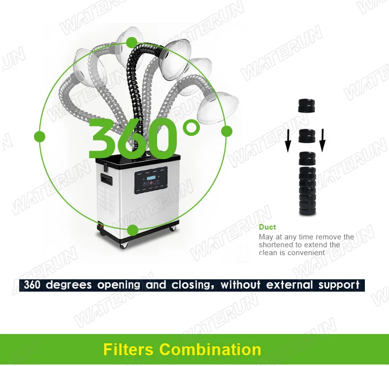 It catches harmful smoke with freestanding ducts and adjustabl air volume to significantly improve your working environment