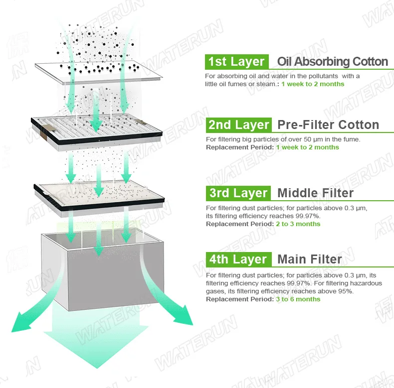 3. Multi-filter design, the prefilter and main filter can be replaced separately to proelong the filter's life time and cut down the cost;