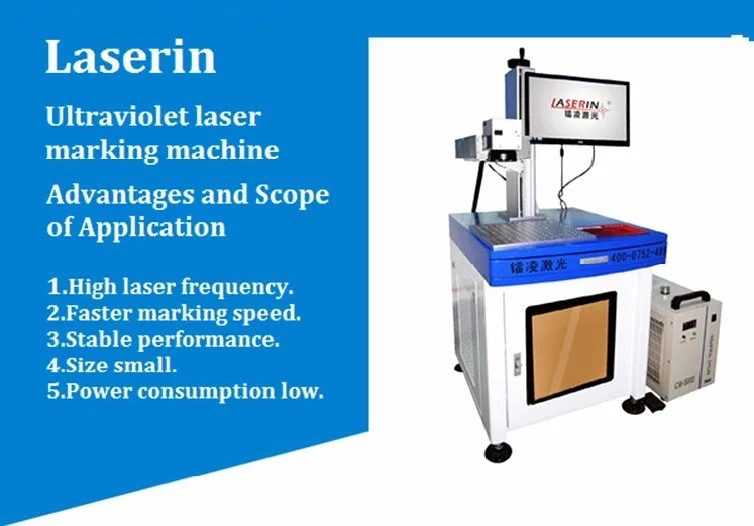 UV laser marking machine is developed by using a 355nm UV laser,355nm ultraviolet light focusing with tiny flare spot.light beam quality is excellent,achieving super fine marking,small heat affecting area,avoiding damages of processed materials.Hence,it is only used for super fine marking,special material marking and sculpture.And used Galvanometer scanning system,applied scanning Galvanometer