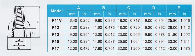 | P17 | Blue | 600 V Max. | 14-6 AWG, Cu | 100 Pcs/Bag |