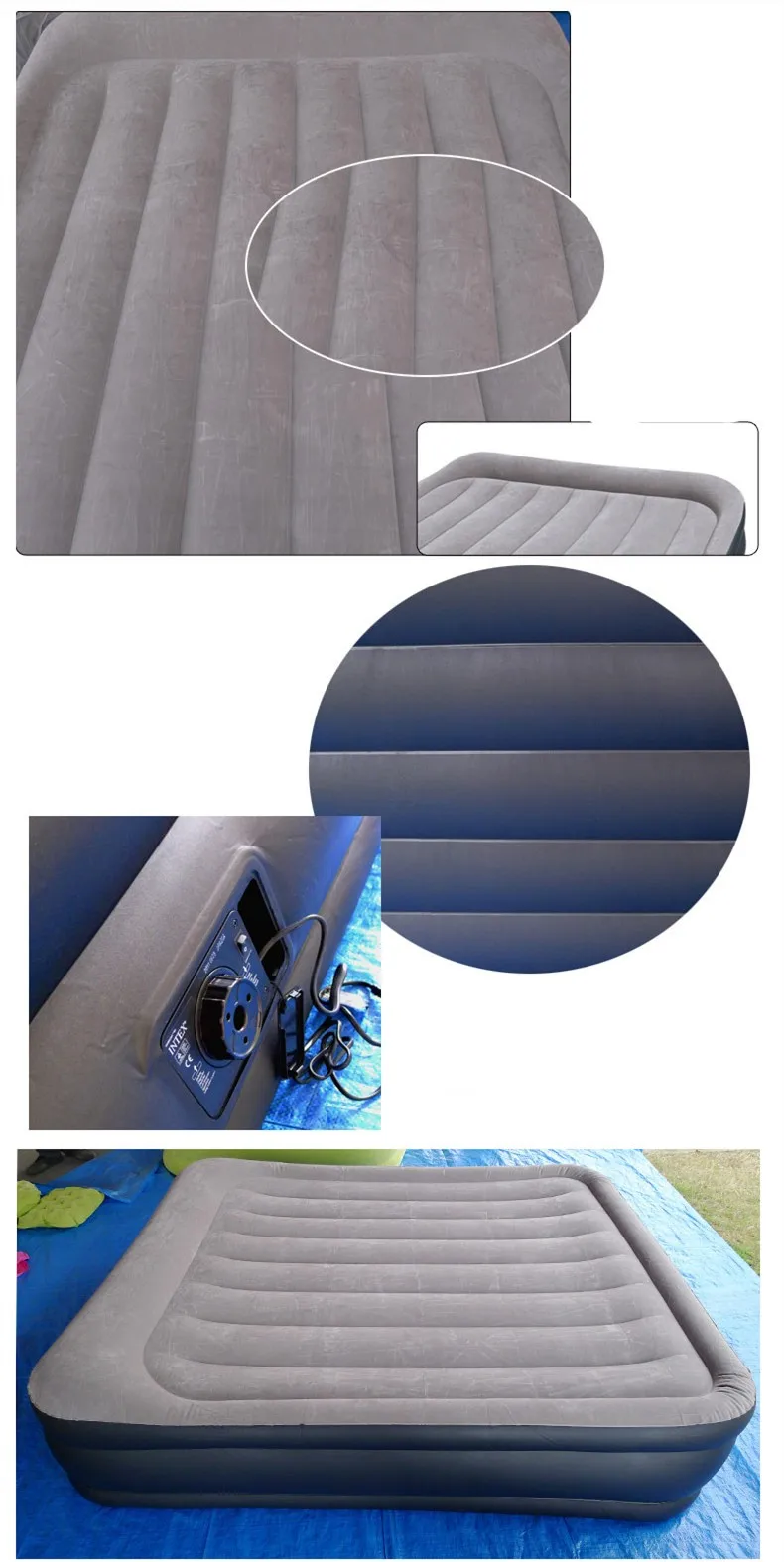 Regarding Inflation: Measurements will vary based on the manner in which it is inflated and packaging disclaims “approximate size”. Airbeds are measured from the widest point including the beams (bulges) on the side and off the tallest point from the floor including built-in pillows if applicable. Location, temperature, and humidity will affect the airbed’s firmness. Airbeds will need to be occasionally re-inflated (topped off) to maintain desired firmness when used for more than a few days as vinyl tends to relax over time.