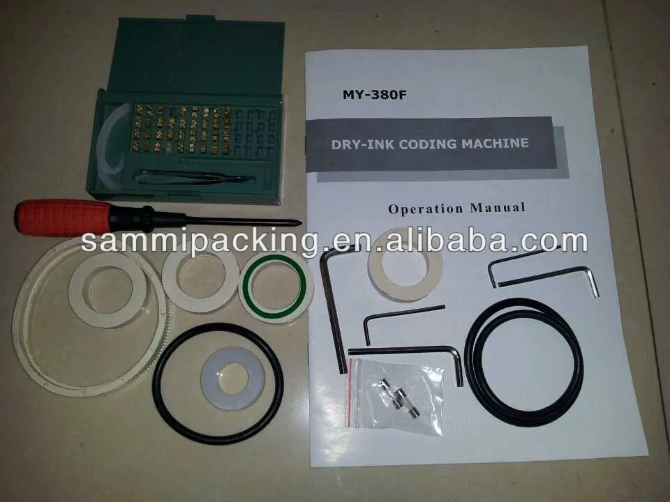 MY-380 Automatic dry-ink coding machine suits for printing labels on the surface of paper, non-ferrous plastic film and aluminum foil. It applies advanced dry-ink roller for printing and can make the words be printed clearly and uneasy to decay and change. The letters/numbers sizes of this coding machine are available with 2mm, 2.5mm, and 3mm. You can choose the size you want. ..