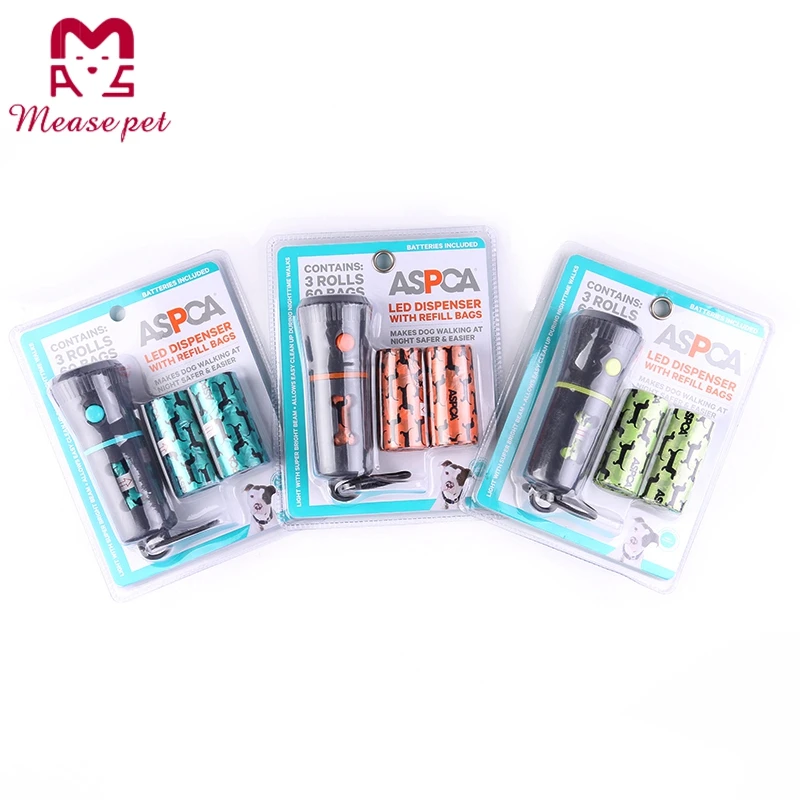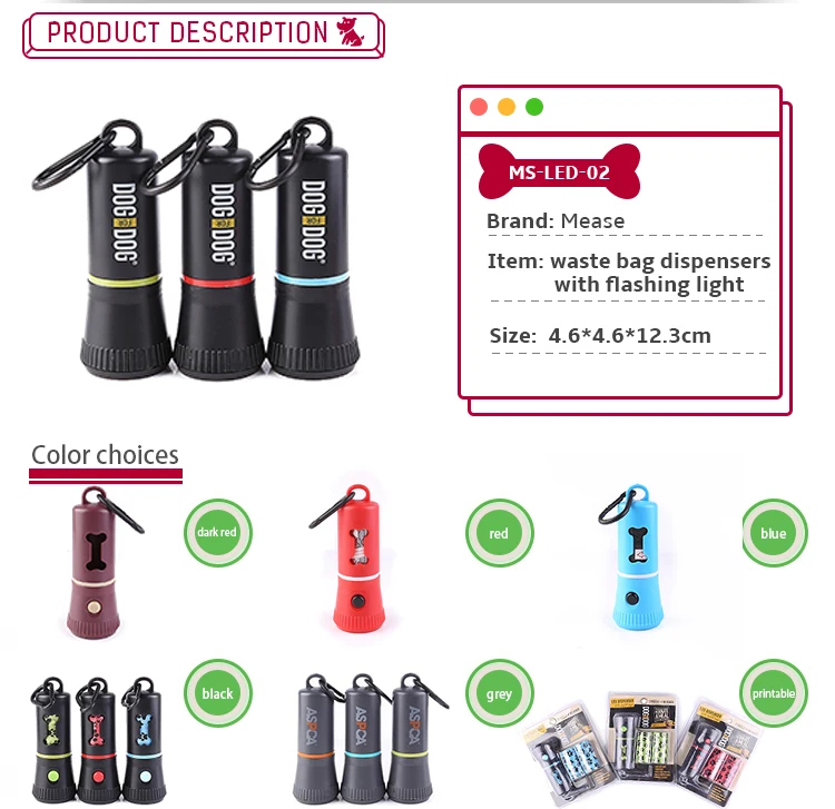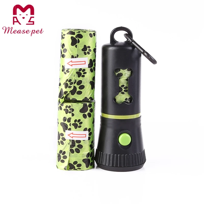 | Pet accessory factory design plastic flashlight dispenser with dog waste bag and LED dog poop bag dispenser | |
