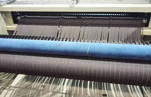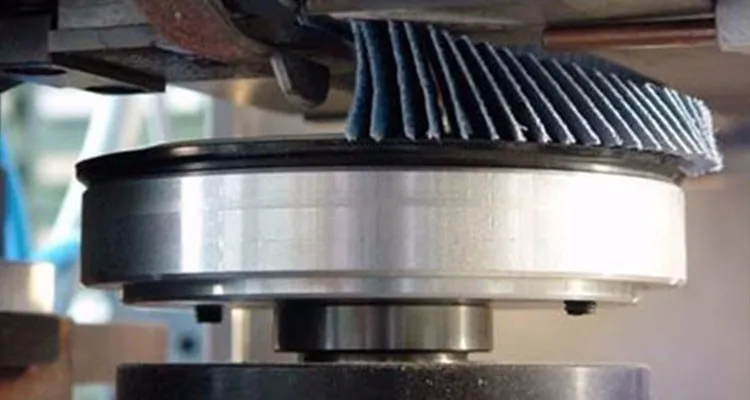 Which coated in abrasive material, is run over the surface to be processed in order to remove material or produce
