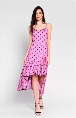 The Lace Slip Dress is the New Dress Your Wardrobe Needs. This mid length woven slip dress features adjustable thin straps, side splits and lace hem.