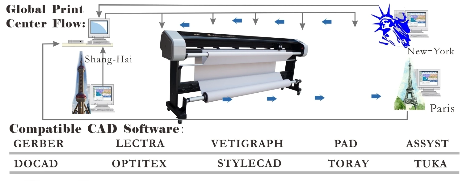 LAN & Multi - Plotter Plotting Online | Realize a computer to control 50 Inkjet Plotters to print at same time by LAN. Each Plotter can be setup and controlled easily in LAN. |