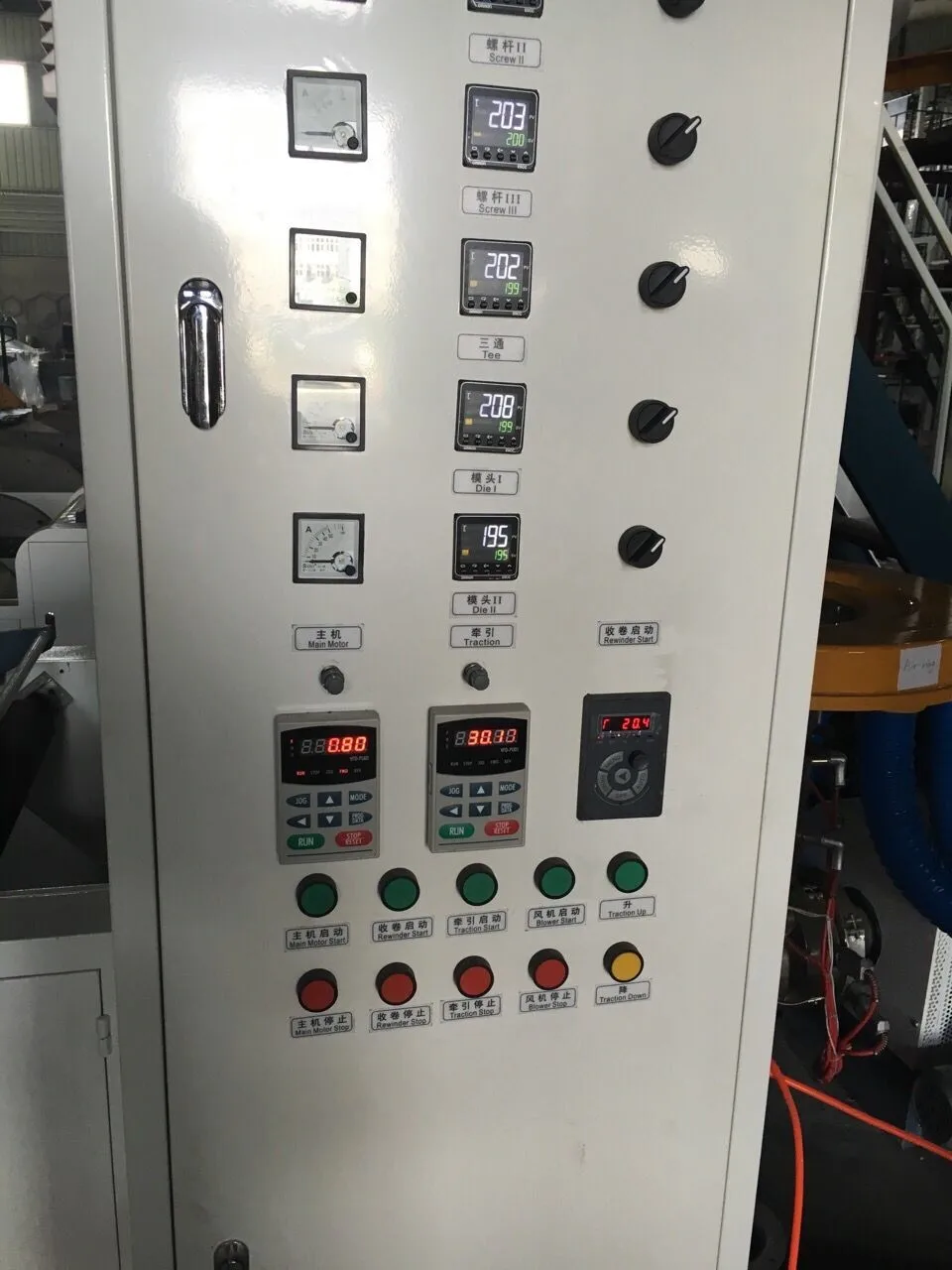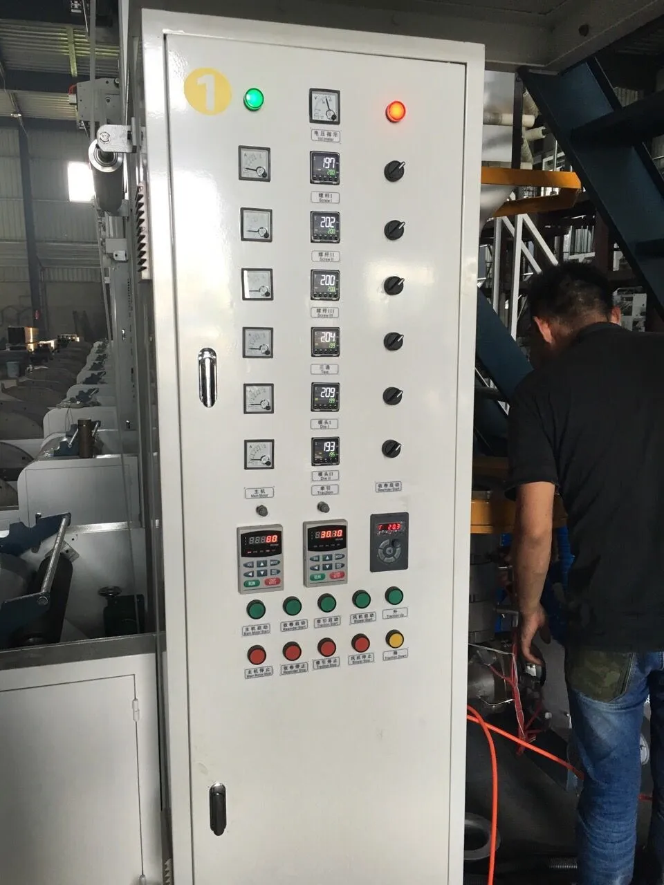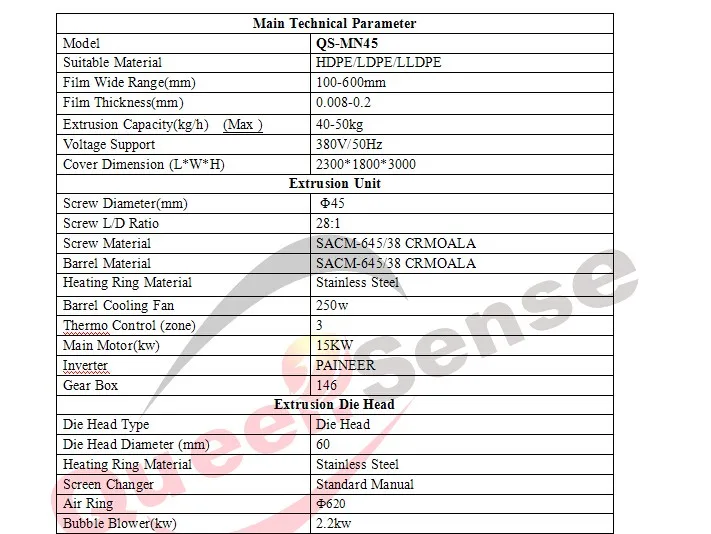 This machine set is used for blowing Low-density polyethylene (LDPE) and high- density polyethyene (HDPE) plastic film to make various vest bags and flat-rim bags which have been widely used for packing in the food industry, garment industry and textile industry, etc.