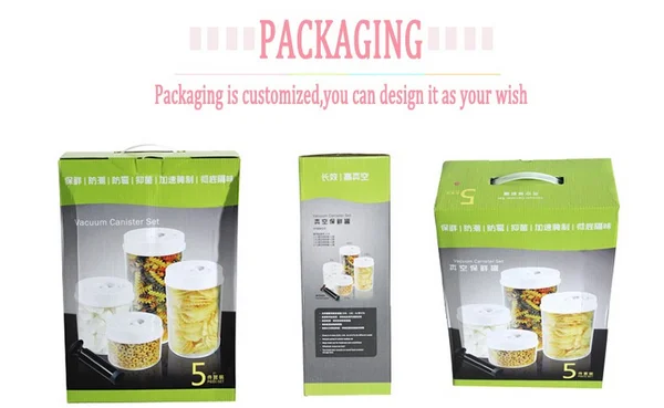 The vacuum sealer and accessories are packed in a gift box, four boxes to a carton.