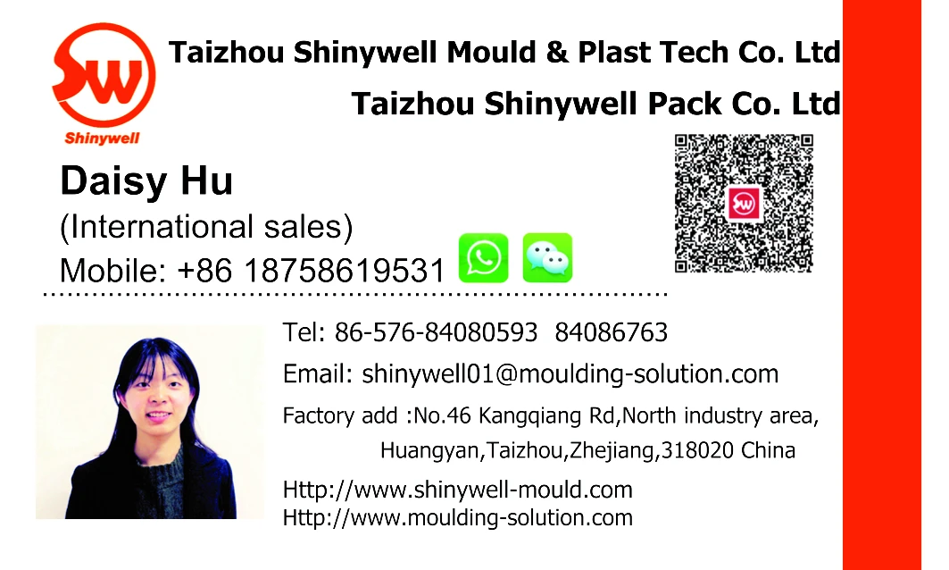Shinywell Mould factory is a leading provider of innovative, value creating mould solutions in China. Being in the plastic packaging mould field for 10 years, we have been devoting ourselves to producing and developing preform mold, cap mold, bottle blow mold, bucket mold, thin wall container mold, etc. With continuous improvement and innovations, we have become an outstanding enterprise in same line.We can handle all the mould production line, from drawing concept, development, production, quality control, maintenance and after-sales service, etc.